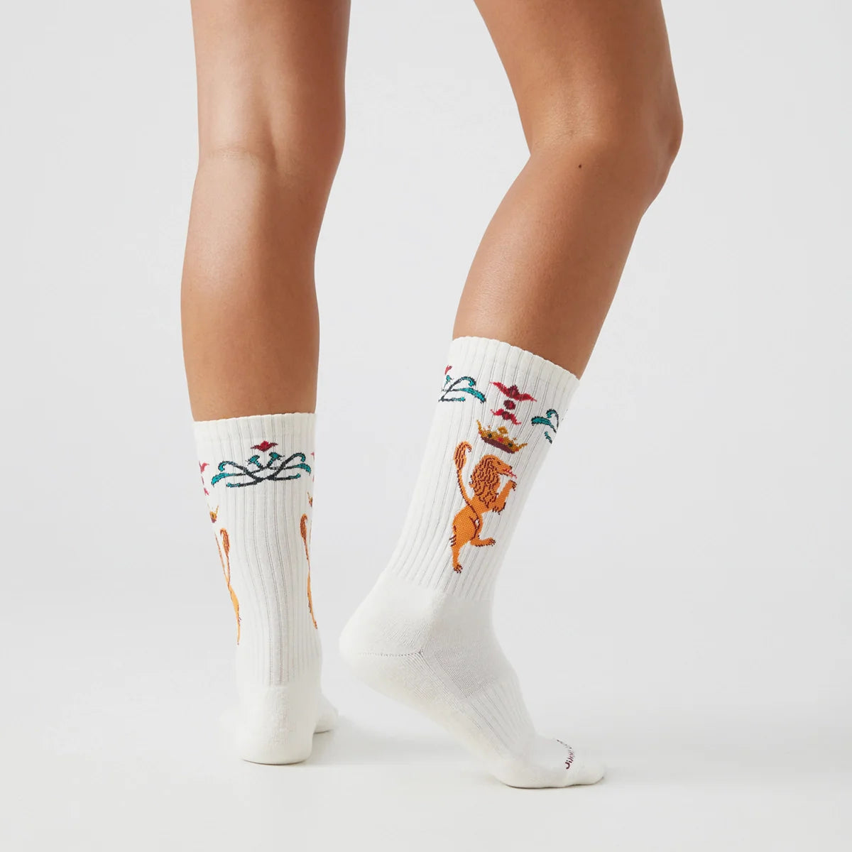 Sumérgete en el fascinante universo de la artista Brianda Fitz-James Stuart con los calcetines Athletic Brianda Lion Crown. Inspirados en el arte medieval, este diseño con un majestuoso león coronado añade un toque único y creativo a cualquier look.